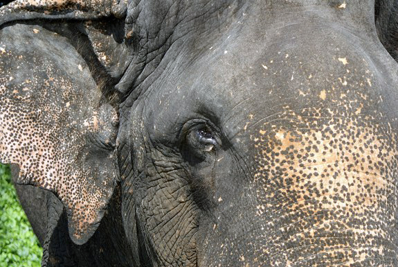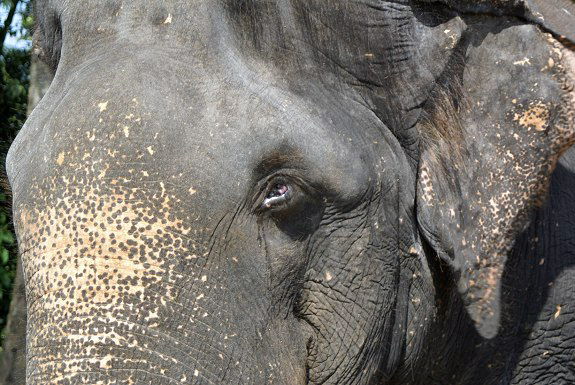 Beispiel der Arbeitselefant Sanka. Die tiefen Narben an seinen
