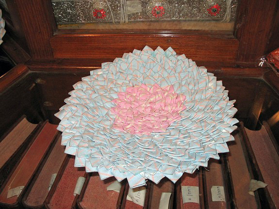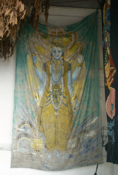 siehe Foto rechts. Dunkelblaue Fahnen richten sich zum Beispiel an Vishnu, denn diese