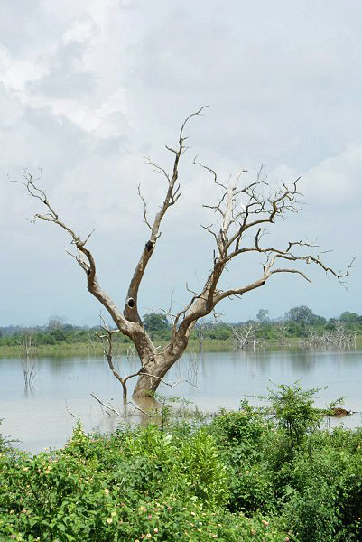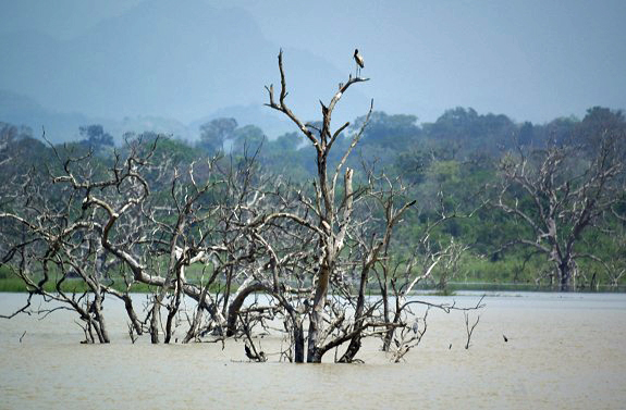 Udawalawe-Stausee im Nationalpark. Dieses Gewässer enthält je nach