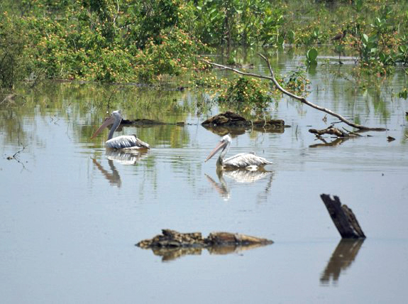 Graupelikane auf dem See zu entdecken. Darüber hinaus bewohnen