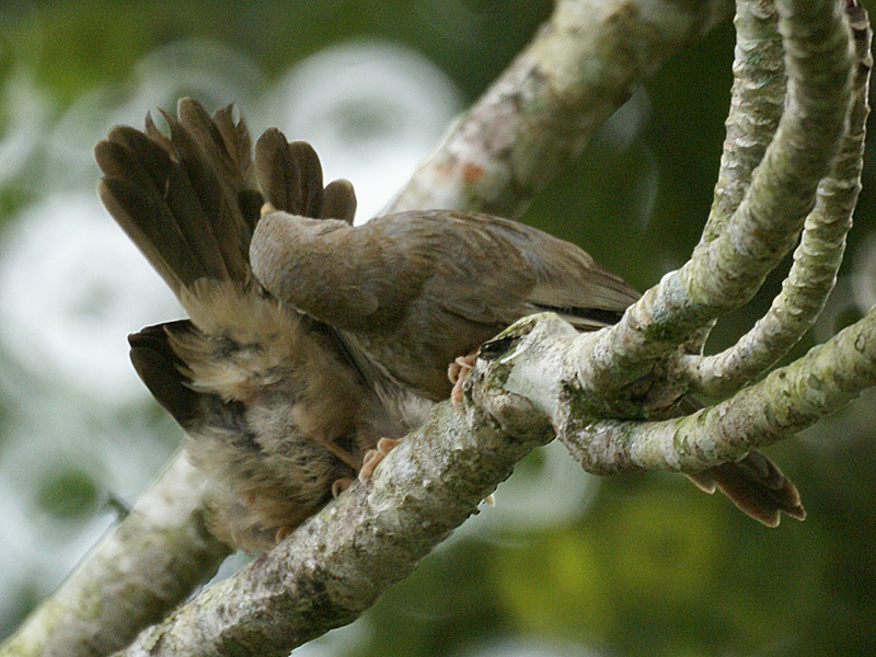 und trägt am gesamten Körper ein bräunliches, schlichtes Federkleid.