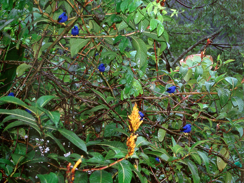 manacus), deren Balzplätze in Bodennähe im schattigen Wald