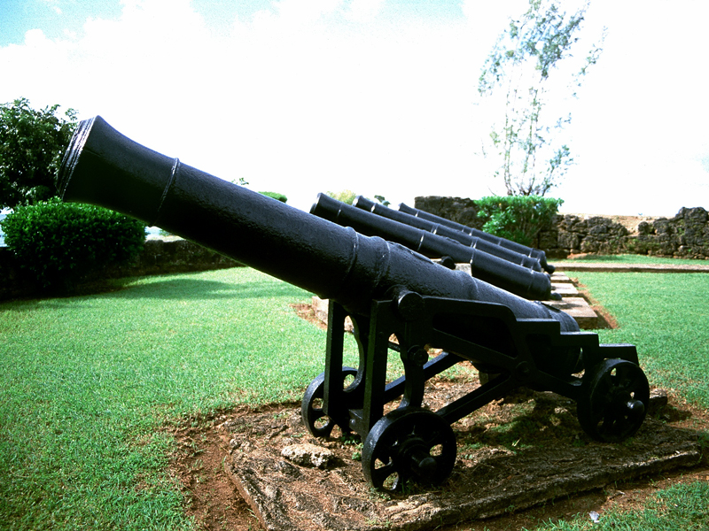 noch wenig erhalten, zu sehen sind beispielsweise noch die vier Kanonen,