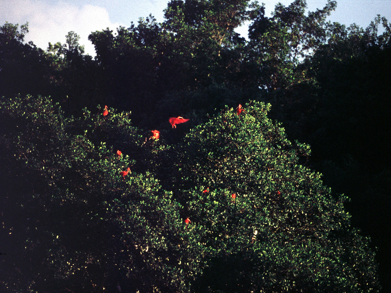 Scharlachsichler, dies sind die Nationalvögel der Insel Trinidad, sammeln