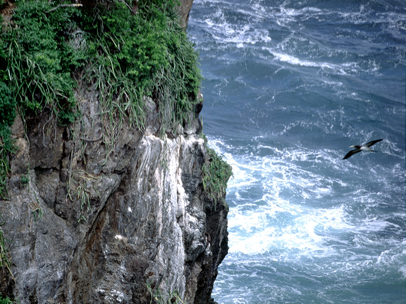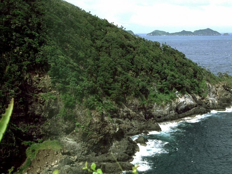 atemberaubenden Blick auf die steil abfallende Felsküste Little Tobagos.