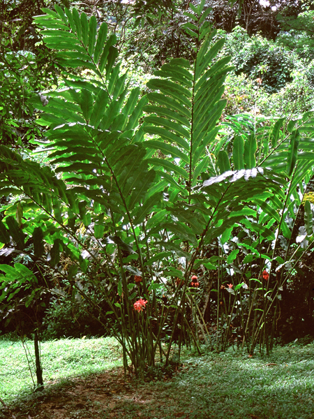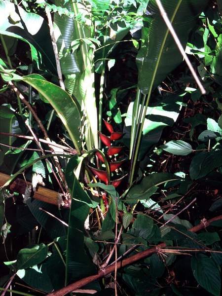 Exemplare dieser Art circa zwei Meter hoch, doch Heliconia chartacea kann bis zu