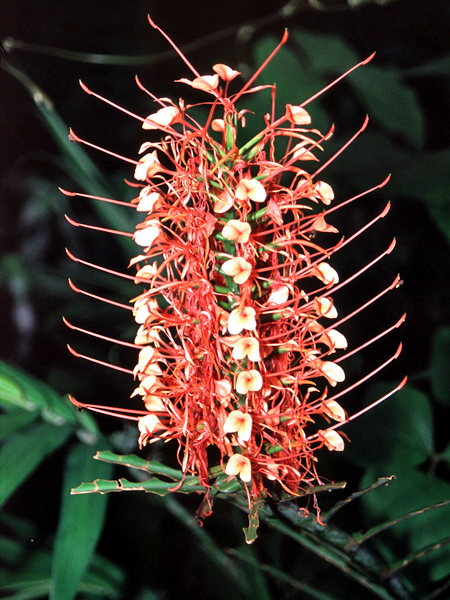 Hedychium coccineum, der mit seinen prächtigen Blüten das Auge