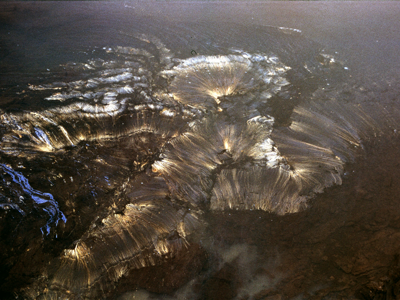 zähflüssiges Magma erinnert hat. Kleine Wulste und Täler durchziehen den
