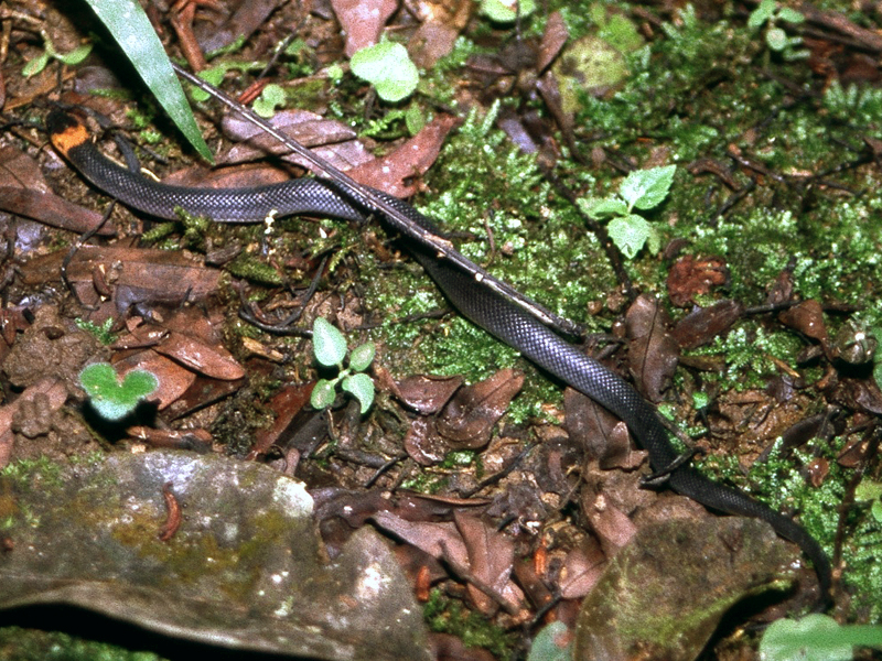 Die Schlangenart Ninia atrata ist recht klein und sie lebt an