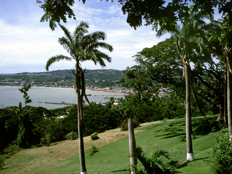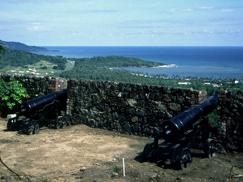 Stadt und die Küste Tobagos schweifen lassen. Das Fort ist in den 1770er