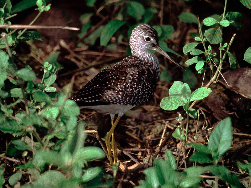der Große Gelbschenkel. In Sumpfgebieten, auf Schlickflächen an den