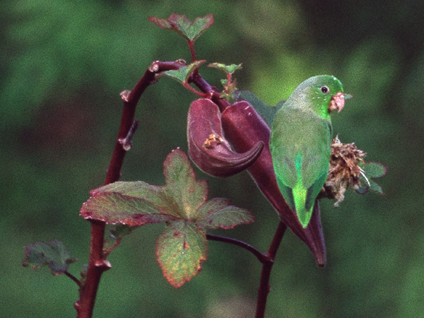 die kleinen Papageien, die im Grün der Vegetation meist kaum auszumachen