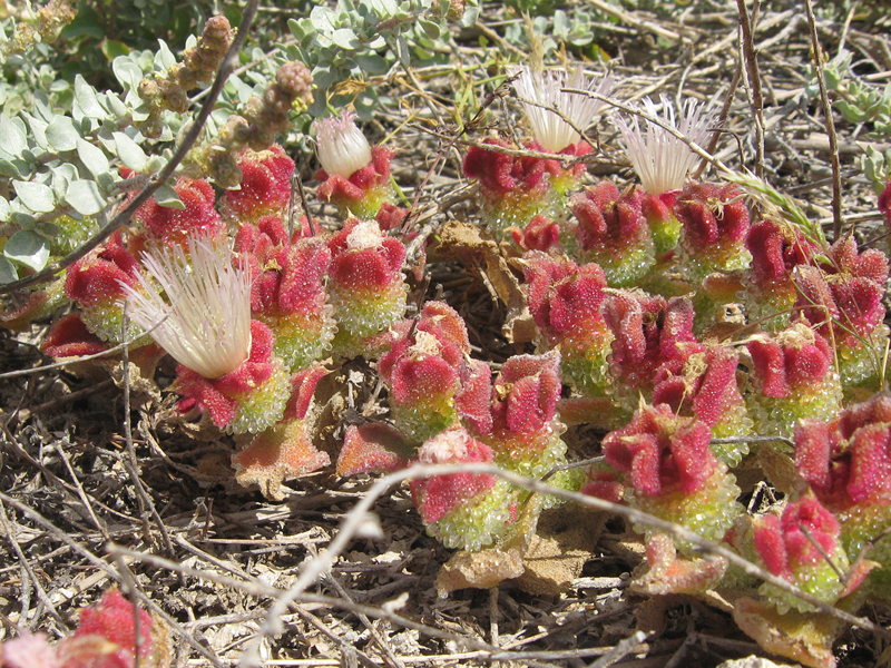 Büsche gedeihen dort zwischen etlichen anderen, sehr niedrigen Pflanzen.