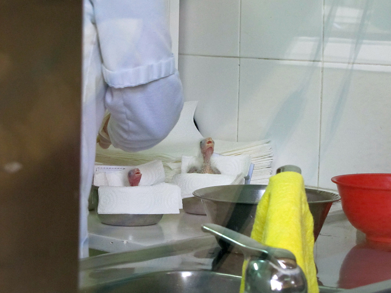 der Baby Station, siehe Foto rechts. Durch Glasscheiben können dort Papageienküken