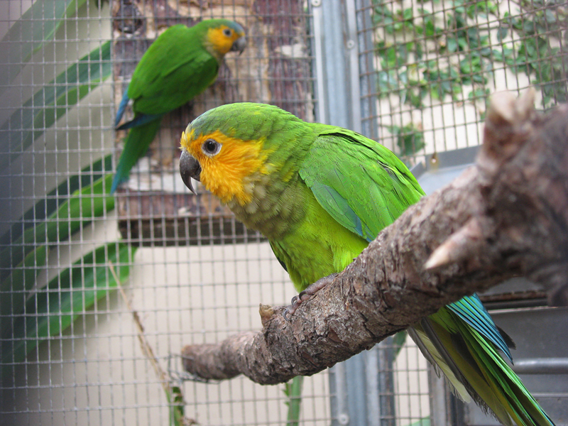 in einer großen Zuchtanlage seltene Papageien und Sittiche