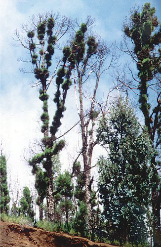 massiveren Stämmen haben überlebt, weil einzig die Rinde abgebrannt ist