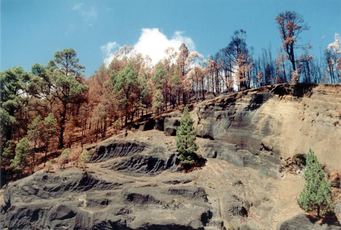 deshalb noch dünne Bäume sind seinerzeit verbrannt. Ältere Bäume mit