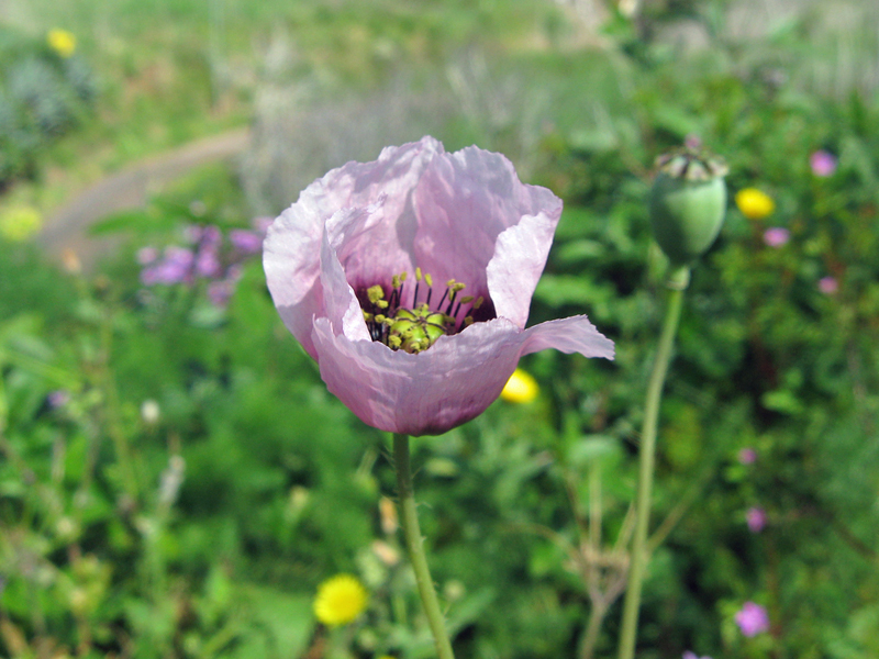 Borstige Schlafmohn ist nahe verwandt mit dem Schlafmohn (Papaver somniferum),