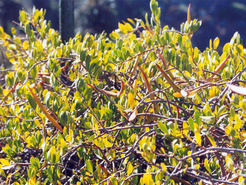 Kiefernwäldern. Die Spezies bildet verzweigte Sträucher. Ihre Blätter