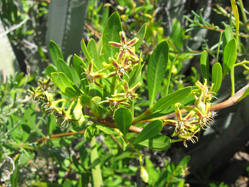 Pflanzenart bildet immergrüne, kahle Sträucher. Ihre Äste sind biegsam.