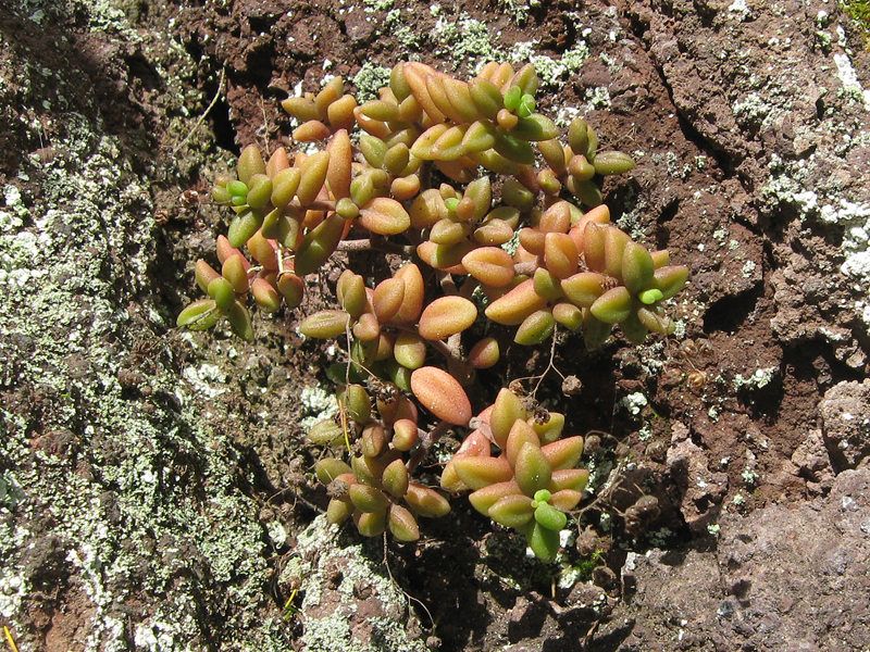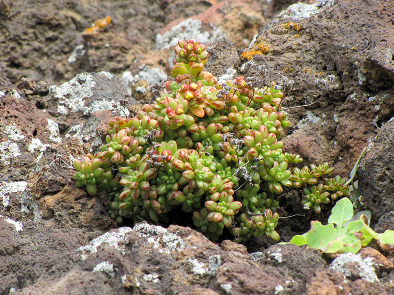 rot gefleckt. Das Lockerblütige Monanthes wächst mancherorts an Felsen