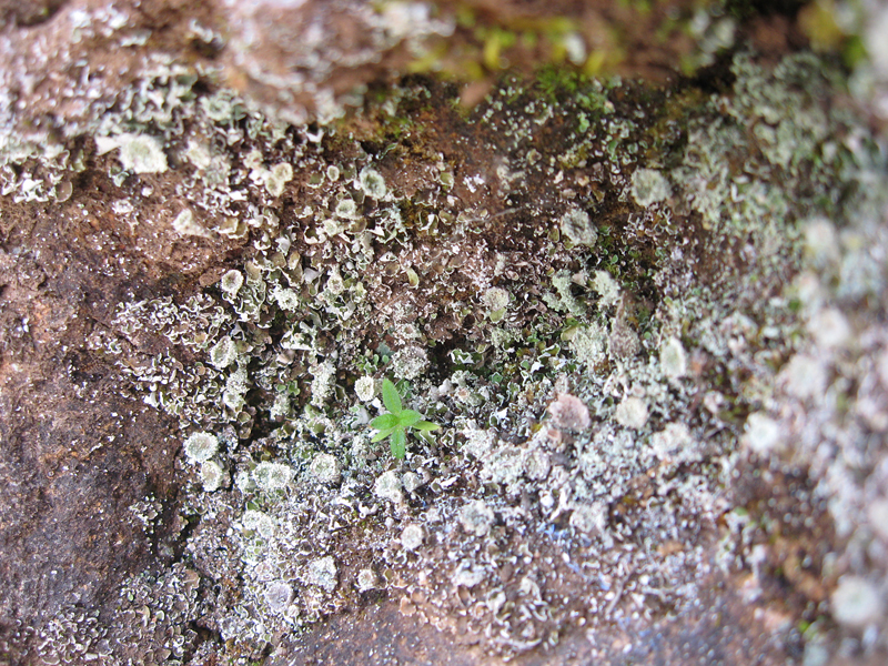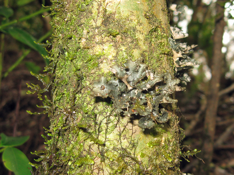 meist auf Laubbäumen, ist aber auch auf Beton, Mauern und Steinen