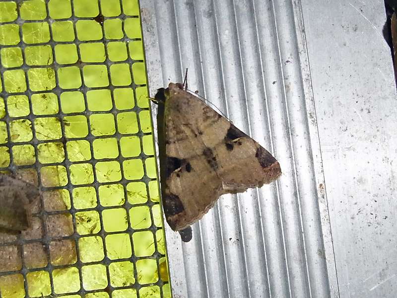 Hinterflügel auf der Oberseite. Ihre Grundfärbung ist braun und sie