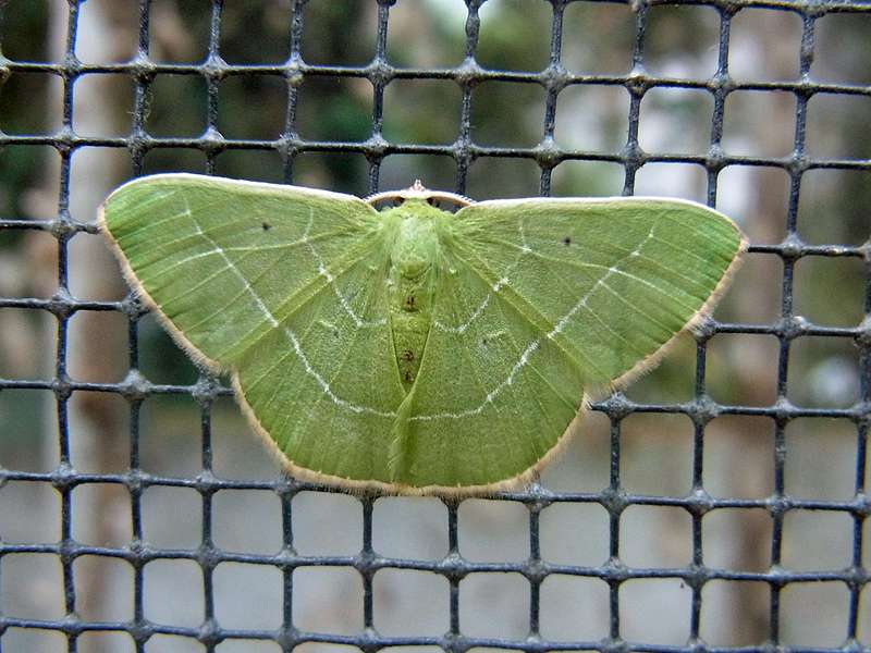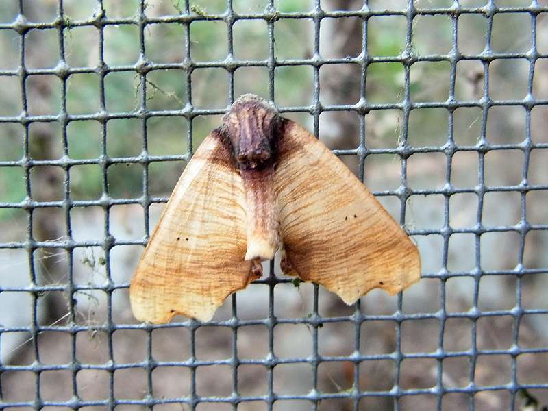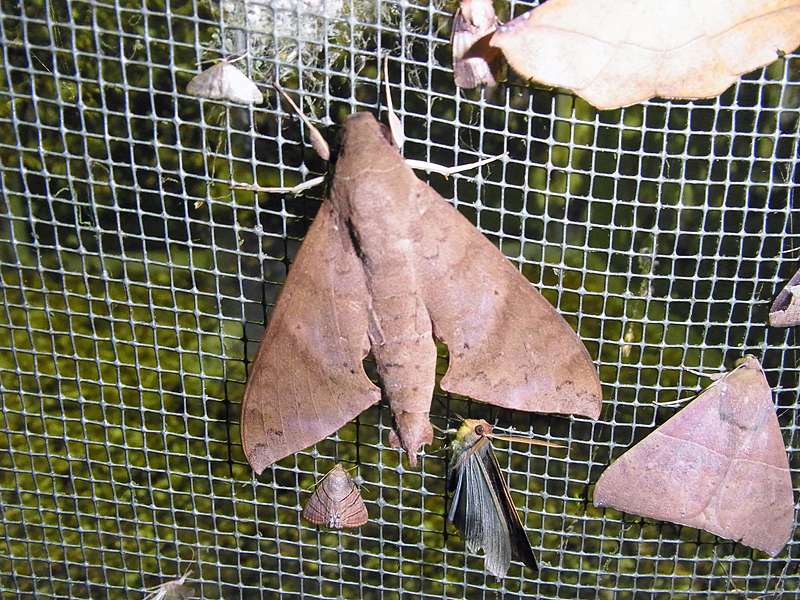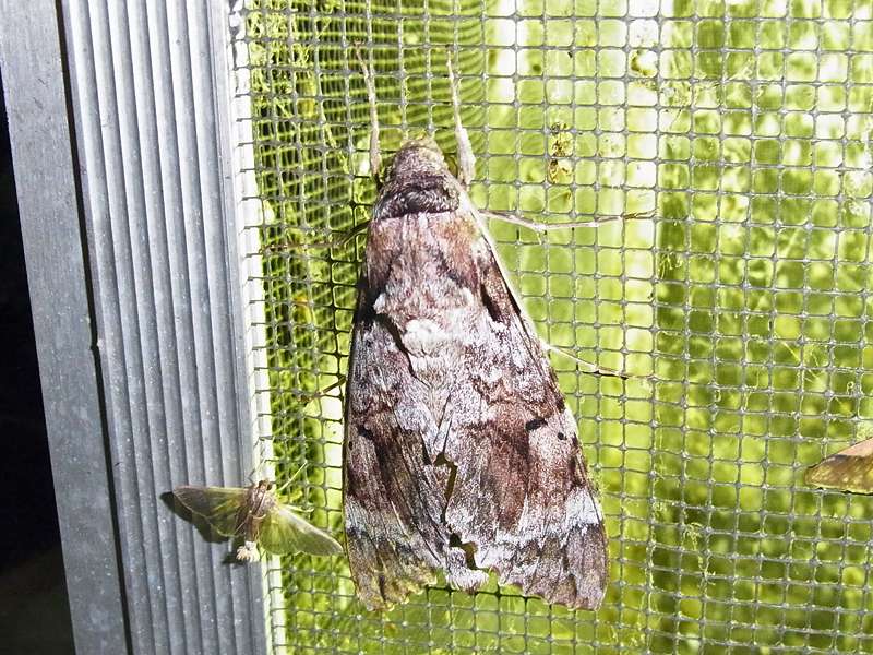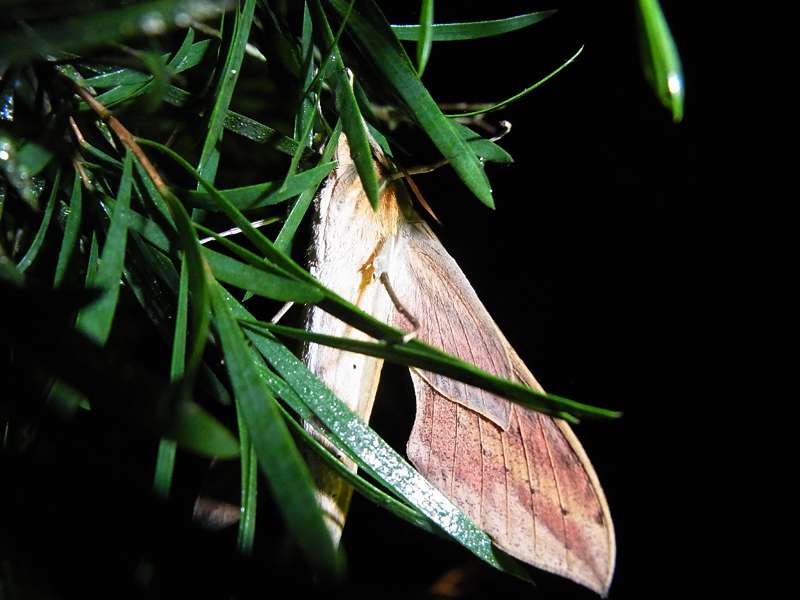 von Kunstlicht anlocken. Auf der Oberseite sind die Vorderflügel