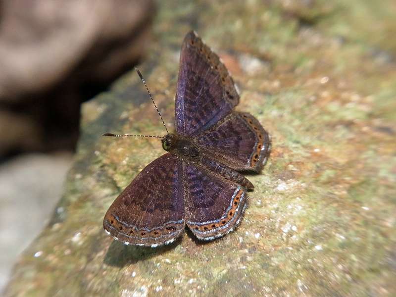 30 bis 33 Millimeter beträgt die Flügelspannweite von Rhetus periander.