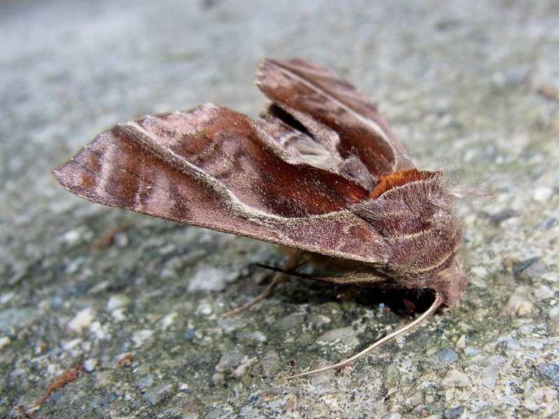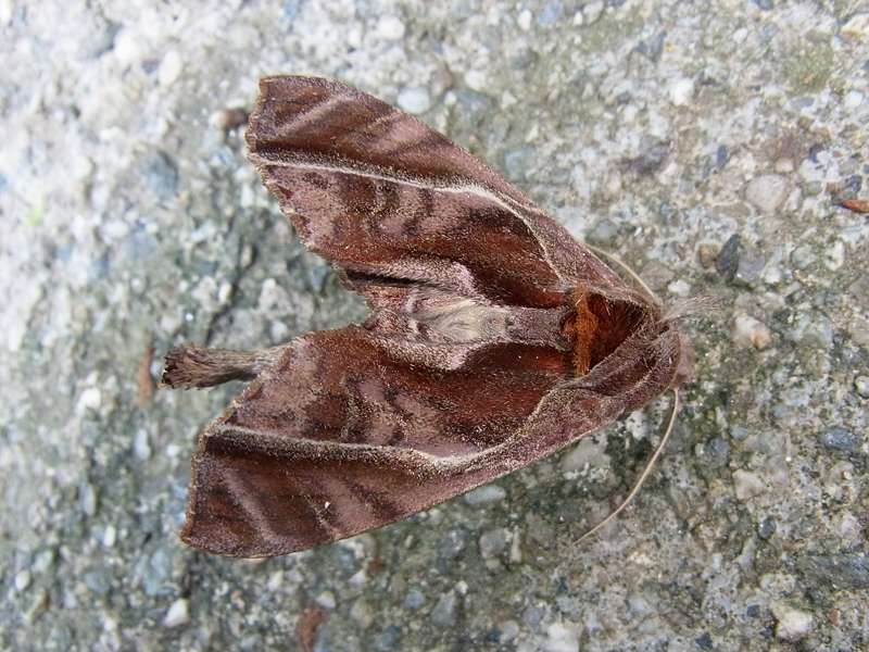 Vorderflügel braun bis leicht violettbraun gefärbt. Sie tragen ein