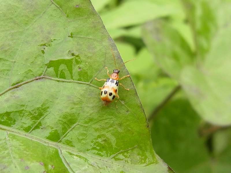 und des Halsschildes. Das Schildchen ist bei diesen Käfern weiß, die