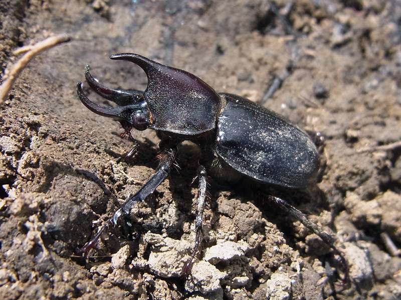 aus dem Halsschild, die beiden anderen Hörner befinden sich vorn am