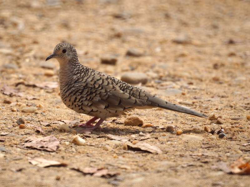 Schuppentäubchen mit keiner anderen Art zu verwechseln: Ihr Gefieder ist am gesamten Körper graubraun gefärbt und die Federn haben jeweils einen dunklen Saum. Dadurch ergibt sich ein Schuppenmuster, das für die Art charakteristisch ist und sie unverwechselbar macht. Allenfalls das Inkatäubchen sieht dieser Vogelart ein wenig ähnlich, doch diese Tauben sind eher bräunlich als graubraun gefärbt. Bei den Schuppentäubchen ist das Gefieder an der Körperunterseite etwas heller als die Federn auf der Oberseite. Der Schnabel ist schwarz und die Beine sind fleischfarben. Etwa 22 Zentimeter sind Schuppentäubchen groß. In trockenen bis halbtrockenen Regionen leben diese Tauben, in Venezuela sind sie vor allem im nördlichen, aber auch im westlichen zentralen Landesteil beheimatet. Paarweise oder in kleinen Gruppen halten sich die Vögel am Boden auf und suchen dort nach Nahrung. Sie fressen kleine Sämereien.