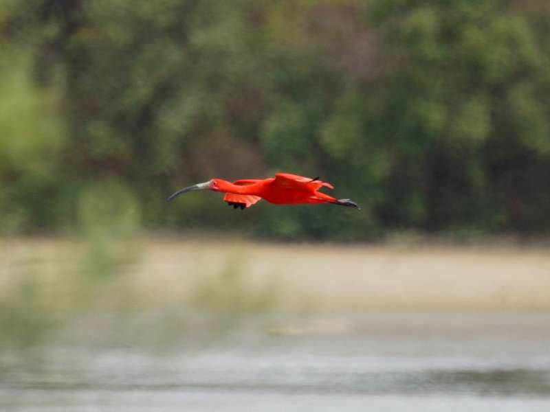 Eine der schönsten und farblich besonders beeindruckenden Vogelarten Venezuelas ist der Scharlachsichler. Diese Vögel sind in sumpfigen, feuchten Gegenden wie beispielsweise in Mangrovengebieten anzutreffen. Sie kommen in Venezuela an der Küste sowie mancherorts im Landesinneren vor. Letzteres gilt vor allem für den nordwestlichen Landesteil. Scharlachsichler sind knapp 60 Zentimeter groß. Bei erwachsenen Vögeln ist das Gefieder scharlachrot gefärbt. Die Spitzen der äußeren vier Federn an den Flügeln sind schwarz. Im Gesicht tragen die Vögel keine Federn, dort ist die Haut rosa. Während der Brutsaison ist der Schnabel dunkelgrau bis fast schwarz; an der Basis ist er rosa. Dunkelgrau sind die Beine gefärbt. Bei jungen Scharlachsichlern ist das Federkleid auf der Oberseite des Körpers graubraun. Dagegen ist es auf der Körperunterseite meist hell graubraun. Auf dem Speisezettel dieser auffälligen Vögel stehen kleine Krustentiere wie zum Beispiel Winkerkrabben.